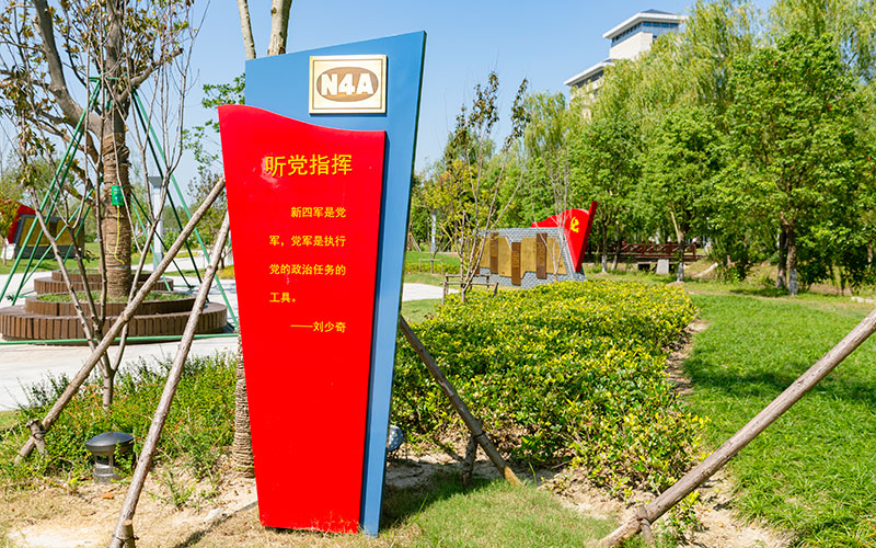 新四軍文化林,位于鹽城經(jīng)濟(jì)技術(shù)開(kāi)發(fā)區(qū),北起團(tuán)結(jié)河,南至鹽瀆路,東側(cè)毗鄰鹽城市委黨校,西至通榆河河坎,總面積315畝,總投資約1億元,已于2021年4月竣工。新四軍文化林以自然林帶為背景,鐵軍文化為核心,整合四季景觀,追憶新四軍英雄史詩(shī),通過(guò)“聽(tīng)黨指揮、報(bào)國(guó)為民、英勇頑強(qiáng)、戰(zhàn)地黃花、執(zhí)紀(jì)嚴(yán)明、經(jīng)濟(jì)建設(shè)、團(tuán)結(jié)統(tǒng)戰(zhàn)、旌旗獵獵”八大版塊,以人物故事、感人事跡串點(diǎn)成線,通過(guò)開(kāi)放、共享的休閑觀光形式向廣大市民和培訓(xùn)學(xué)員宣傳新四軍鐵軍精神和鐵軍文化,從革命歷史中感悟和汲取鐵軍精神的強(qiáng)大力量,以樹(shù)為碑銘記初心,以林為魂啟迪后人。