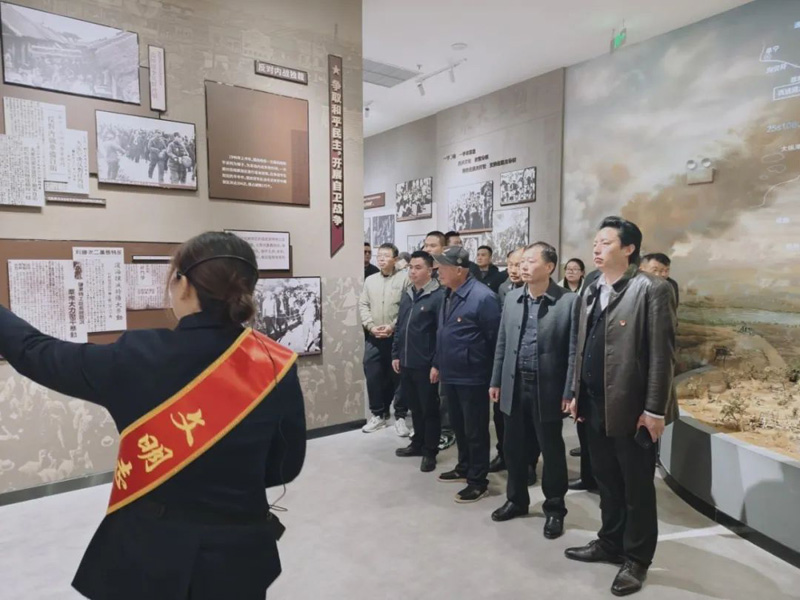 活動伊始,全體人員在講解員的引導(dǎo)下走進(jìn)五條嶺烈士紀(jì)念館。館內(nèi)陳列的一件件斑駁的文物、一幅幅珍貴的歷史照片、一段段震撼人心的英雄故事,生動再現(xiàn)了鹽阜大地上革命先烈浴血奮戰(zhàn)的壯烈場景。黨員們駐足凝望,聆聽講解員深情講述五條嶺烈士的英勇事跡,感悟革命先輩堅(jiān)如磐石的理想信念和舍生忘死的家國情懷,為后續(xù)祭掃活動注入深刻的精神力量。
