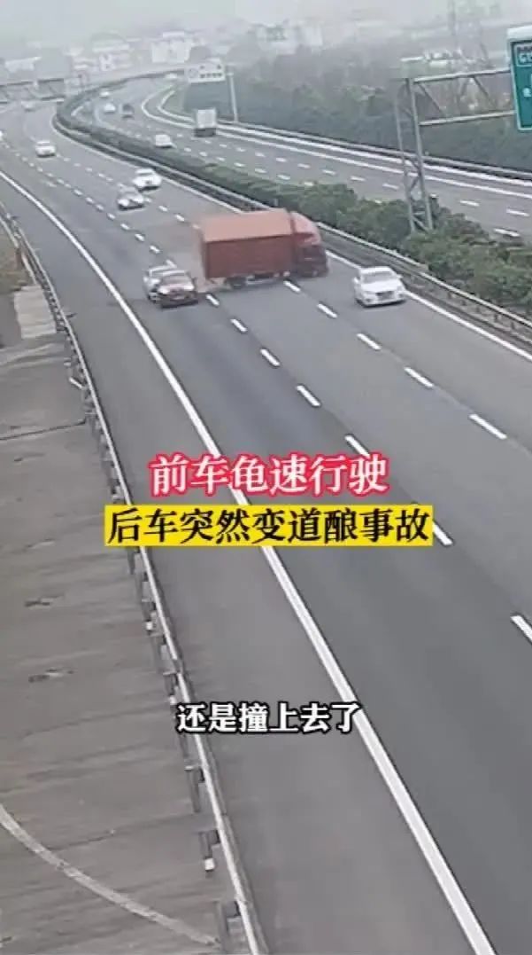 在超車道、主干道上開(kāi)“龜速車”會(huì)影響其他車輛的通行,易引發(fā)多車連環(huán)追尾事故。